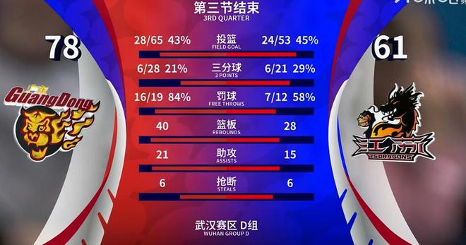 在后场双矮的带动下,广东队重新拉开分差,三节战罢,广东全华班后程发力,徐杰、杨溢、张昊连中3记三分,一波13-6三节领先来到78-61,基本杀死比赛悬念。